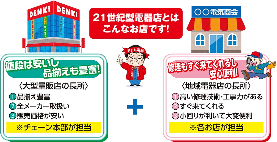 ※本部とお店が役割分担することで「いいとこ取り」のサービスを実現、このサービスが提供できる電器店を『21世紀型電器店』と命名しました。