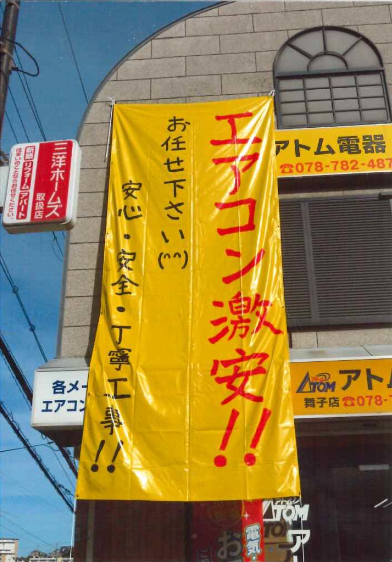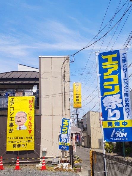 \各店エアコン祭りオリジナルターポリン看板ご紹介/