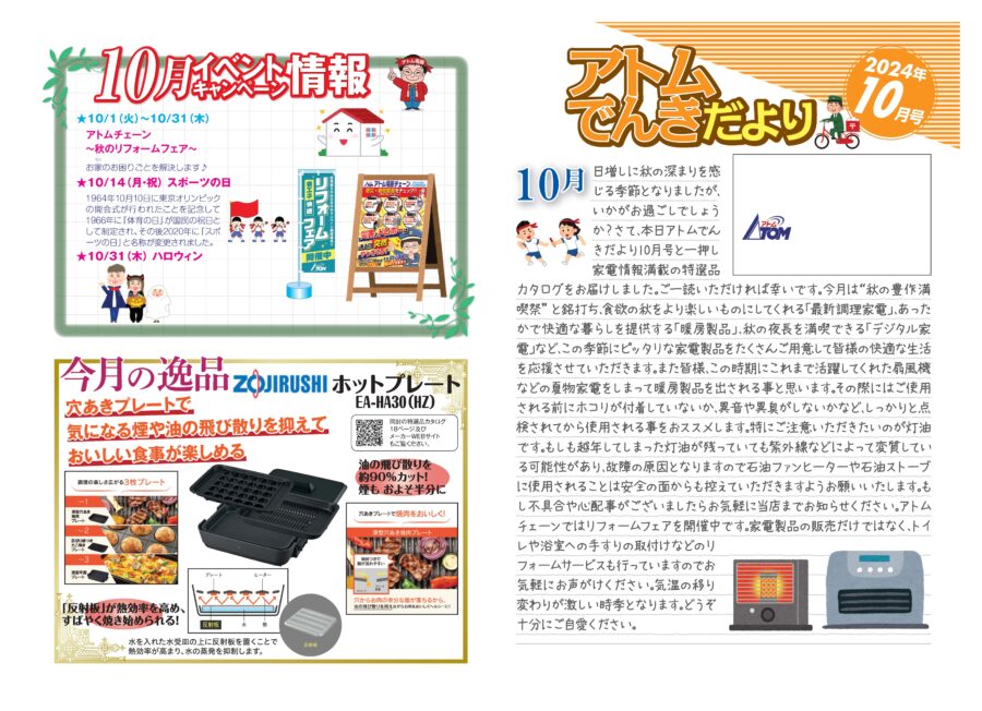 アトムでんきだより10月号のご案内