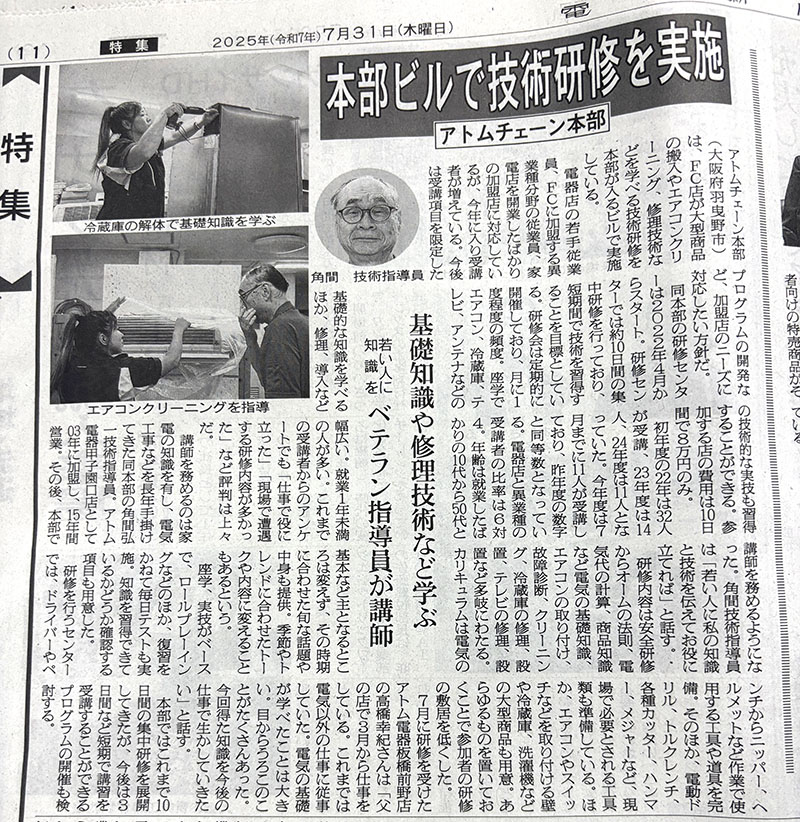 【電波新聞】7月31日号にアトム本部で開催している技術研修の記事が掲載されました。