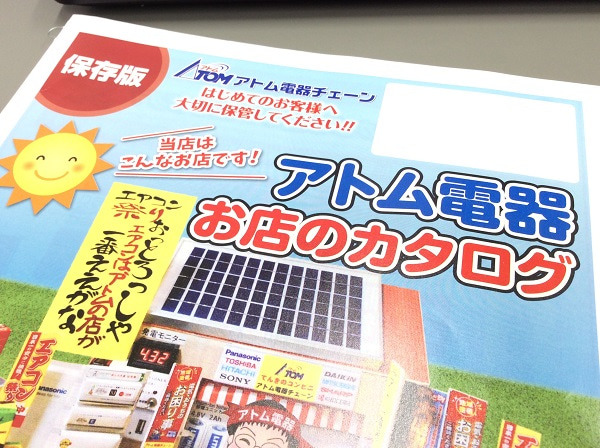 家電量販店さんなどと比べてお客様との関係が密なまちのでんきやさんにとって、これは結構重要な問題だったりします。お店とお客様とのつながりが濃さの分だけ商品にサービスが付随していますから、お店への頼り方、ご利用方法が伝わっていないとお互いにストレスに成り易いからです。そういったわけでアトムチェーンにも「お店の取扱説明書」的なDMが存在します。(※作成する・しない、は各店舗さんのご判断に委ねています。あしからず。)