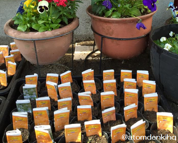 アトム電器の加盟店さんにはもう何年も「花の種」をご利用いただいています。よくご縁とかけて5円玉を入れてくるチラシなどと同じく、開封する理由付けになっている訳ですね。この花の種は最近「イベント時には苗でプレゼント」というオプションも開発され、益々広がりをみせています。