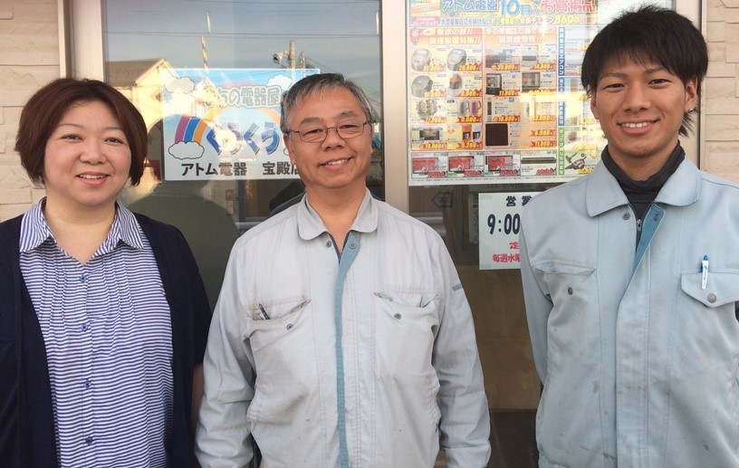 アトムに加盟して10年目になります。地デジへの切り替え終了後、ずっとお世話になっていたメーカー(SANYO)系列のチェーンを辞めて、当時途⽅に暮れていました。家電の売り上げも毎月100万円程度の売り上げまで落ち込んで、他の売り上げ(リフォーム)でどうにかカバーして経営をしていました。